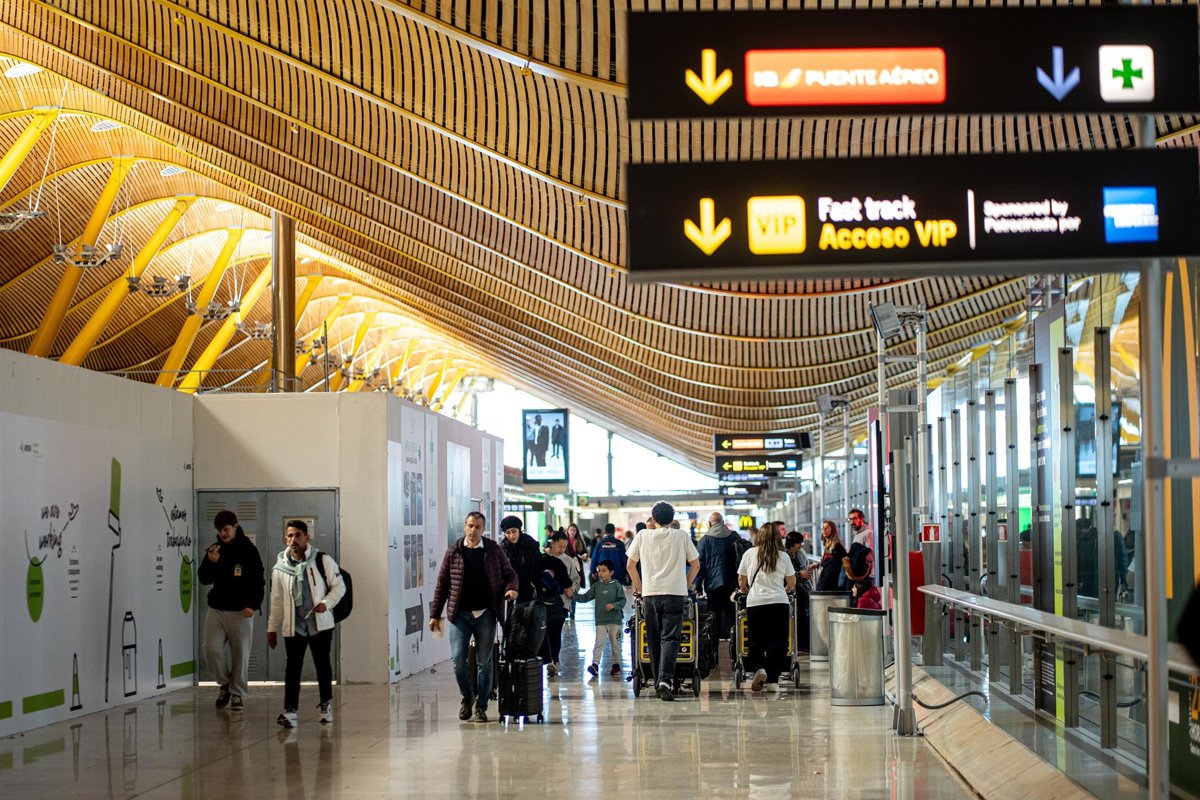 Viajeros en el Aeropuerto Adolfo Suárez Madrid-Barajas, a 19 de diciembre de 2025, en Madrid (España). La red de aeropuertos españoles de Aena prevé operar un total de 101.793 vuelos en estas fechas navideñas, entre este viernes, 19 de diciembre, y el pró - Gabriel Luengas - Europa Press