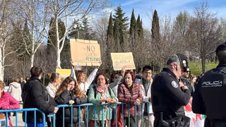 La concejala en el Ayuntamiento por Más Madrid, Sara Ladra, ha acudido a esta concentración y ha definido la celebración como "una apuesta de barra de bar" entre el alcalde de la capital, José Luis Martínez-Almeida, y la alcaldesa de Valencia, María José Catalá.