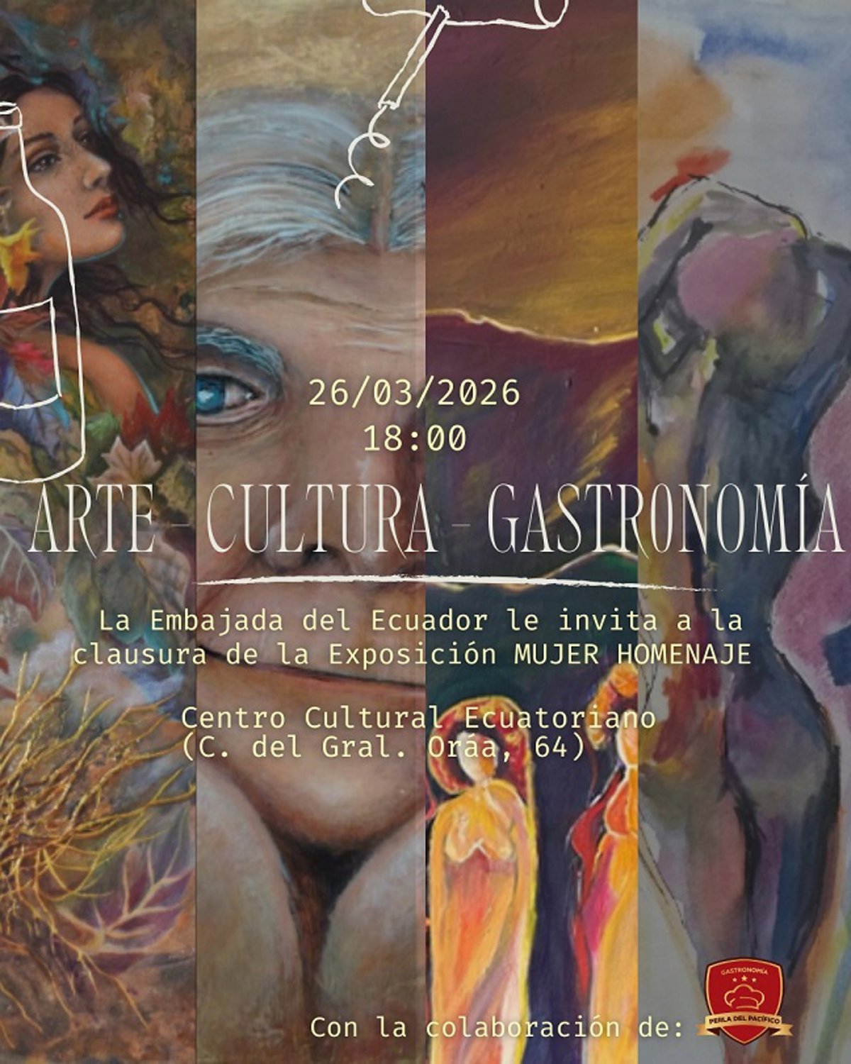 La exposición “MUJER – Homenaje” celebrará su acto de clausura el jueves 26 de marzo de 2026 en el Centro Cultural Ecuatoriano, ubicado en la calle General Oraá 64.