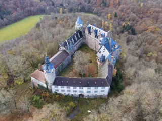 Aerial view of Rammelburg Castle, Germany, Winter 2025 - cedida