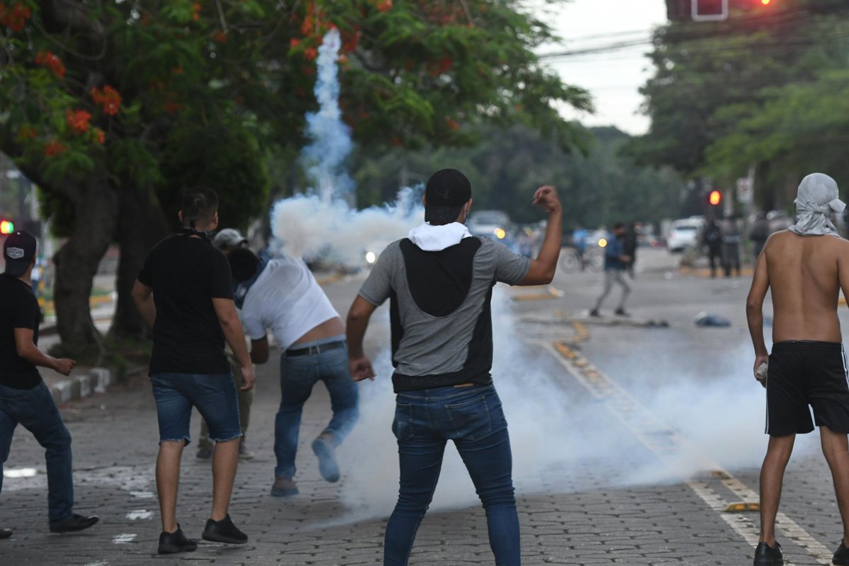 Archivo - 28 December 2022, Bolivia, Santa Cruz: Protesters throw gas grenades at police officers during a protest of supporters of opposition leader Camacho after his arrest. The opposition leader and governor of Santa Cruz was arrested for involvement i - Diego Tejerina/dpa - Archivo