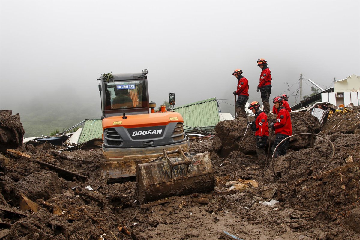 Una de las víctimas mortales --un hombre de unos 70 años-- ha fallecido después de ser trasladado a un hospital a causa del derrumbe de su vivienda. Los servicios de búsqueda y rescate se encuentran actualmente buscando a otro hombre que desapareció tras ser arrastrado por una corriente en Yeongdong.