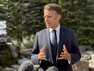 16 June 2025, Canada, Kananaskis: France's President Emmanuel Macron, speaks to the press during the G7 Leaders' Summit in Kananaskis. Photo: Ansgar Haase/dpa - Ansgar Haase/dpa