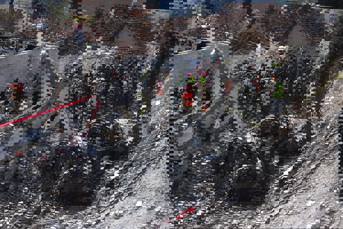 JERUSALEM, March 1, 2026  -- This photo taken on March 1, 2026 shows the scene of a missile strike in Beit Shemesh, west of Jerusalem. Six people were killed and at least 23 were injured on Sunday when an Iranian missile struck a residential area in Beit
