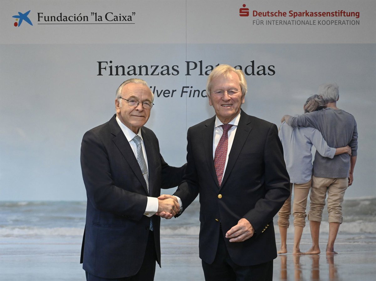 El presidente de la Fundación La Caixa, Isidro Fainé, y el presidente de la Sparkassenstiftung --la Fundación de Cajas de Ahorros Alemanas--, Heinrich Haasis, han firmado un acuerdo para fomentar la inclusión financiera de las personas mayores de 60 años en América Latina.