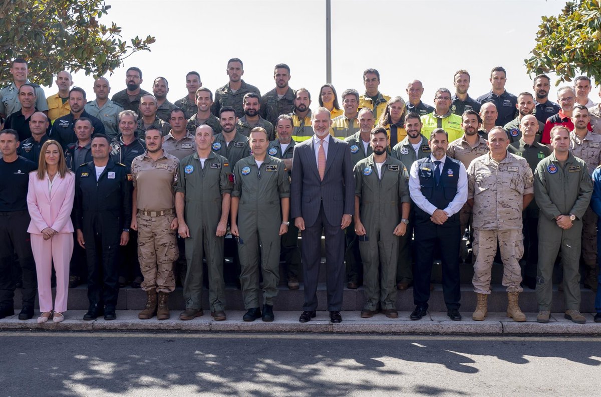 El Rey Felipe VI ha recibido en audiencia en el Palacio de La Zarzuela a una representación del personal del dispositivo aéreo que participó en la extinción de los incendios forestales del pasado mes de agosto en España, y que durante su visita a las zonas afectadas se encontraban de servicio.