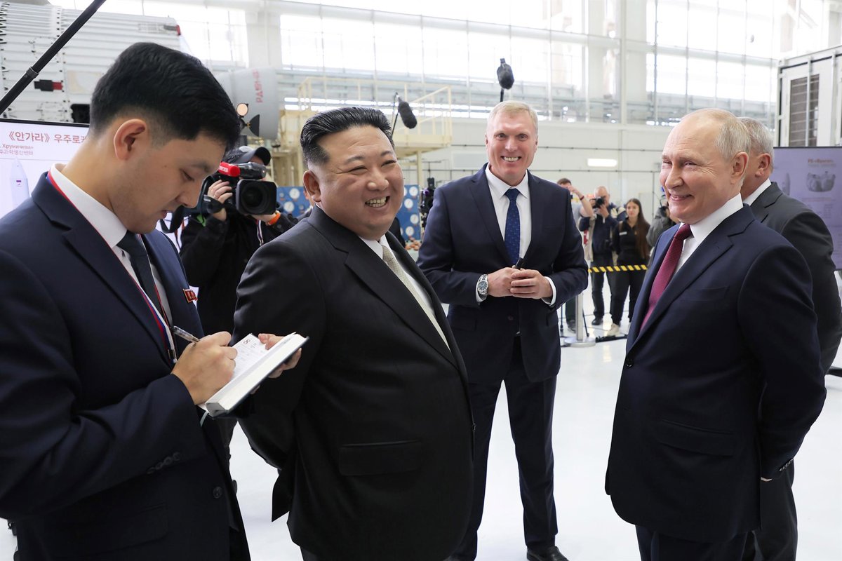 Archivo - 14 September 2023, Russia, Uglegorsk: Russian President Vladimir Putin (R) and North Korean leader Kim Jong-un visit the Vostochny Cosmodrome space launch centre outside the city of Uglegorsk, about 200 kilometers (125 miles) from the city of