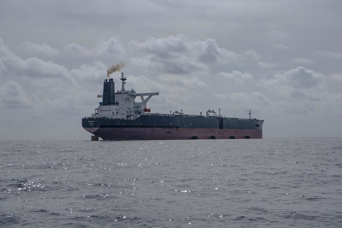 Archivo - El buque ANSHUN II con las defensas “Yokohama” preparadas y las tuberías conectadas para recibir otro petrolero y trasvasar crudo ruso, a 20 millas de Ceuta, a 5 de marzo de 2023, en Ceuta (España). Los buques CRIUS, ANSHUN II y Nobel, petrolero - Antonio Sempere - Europa Press - Archivo