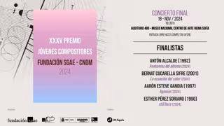 Las cuatro piezas seleccionadas han sido 'Anatomías del abismo', de Antón Alcalde, 'La ecuación del calor', de Bernat Cucarella Sifre , 'Agnosia', de Aarón Esteve Gandía y 'Still here', de Esther Pérez Soriano. Estas obras han destacado entre las 18 recibidas en la convocatoria por un jurado compuesto por los compositores Beatriz Arzamendi, Marcos Fernández-Barrero, Marc García Vitoria, Manuel Martínez Burgos y Laura Vega, también encargados de dirimir el ganador en la final.