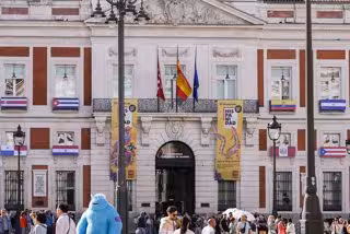 Arranca en Madrid Hispanidad 2024 con la Real Casa de Correos engalanada con las banderas de 32 nacionalidades