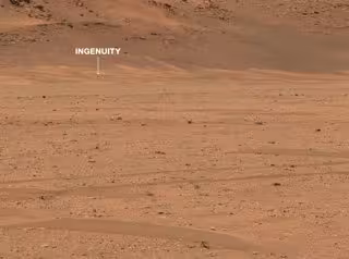 Con 1,8 kilos de peso, medio metro de altura y 1,2 metros de diámetro del rotor, Ingenuity es la primera aeronave a motro bajo control desplegada en otro mundo. Realizó su primer vuelo el 19 de abril de 2021. Ha contabilizado hasta ahora 42 vuelos en los que ha recorrido 251 metros a lo largo de 137 segundos en el aire, tomando imágenes desde el aire.